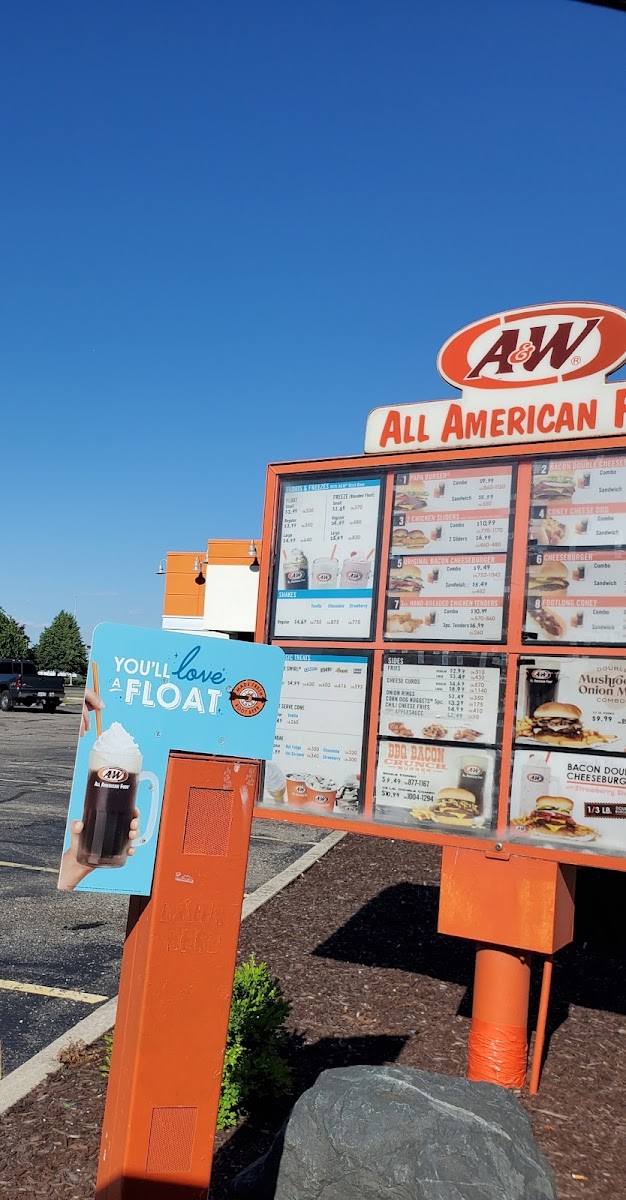 A&W Restaurant is a classic fast-food gem located in Garden City, MI, known for its delicious offerings and nostalgic charm. The menu prominently features their signature Hand-Breaded Chicken Tenders and delectable Cheeseburgers, often complemented by golden Onion Rings and 100% Wisconsin Cheese Curds. Family Packs are a highlight, catering perfectly for larger gatherings with items like the Float Party Pack, which includes their famed root beer and vanilla soft serve. Customers rave about the fresh taste of the food, with many noting the friendly service that makes each visit enjoyable.